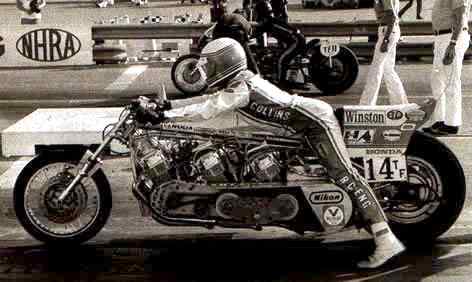 Em 1975, Collins se torna o campeão mundial da categoria Drag Race, vencendo nomes de peso da época como Tom "TC" Christenson e sua Norton de 2 motores e 1620 cc , que tinha o tempo de 8,01 s e velocidade máxima de 269 Km/h !