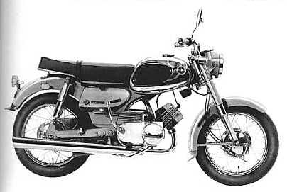 Trata-se de uma motocicleta dotada de um motor monocilíndrico, 2 tempos, de baixa rotação, com alimentação feita pelo cárter, comandado por uma válvula rotativa, a qual controla os pulsos de aspiração da mistura.