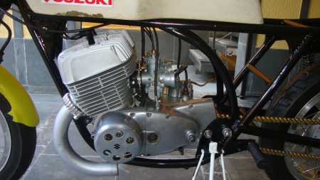 Paolo Tognocchi com a Suzuki TR500 1970Nas fotos abaixo pode-se notar o quadro tipo Norton modificado.
