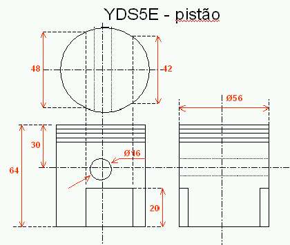 Com essas informações pude gerar um croquis mais detalhado para, caso não ache os pistões originais, poder procurar similares ou fabricá-los.