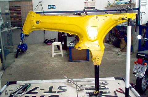 As partes que serão pintadas (quadro, rodas, etc) já foram devidamente jateadas, e preparadas para a pintura.
